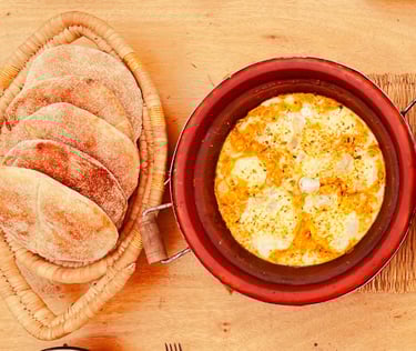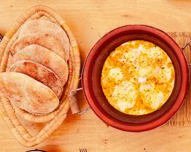 Our spread includes warm msmen (traditional Moroccan pancakes), khobz (homemade bread), local honey, rich amlou (a delicious blend of almonds, argan oil, and honey), and seasonal fruit. All accompanied by aromatic mint tea and freshly brewed coffee.