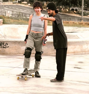 Our skate lessons are designed for all levels, whether you're just starting out or sharpening your skills. Led by experienced instructors, each session is fun, safe, and tailored to help you progress at your own pace. All equipment is provided — just bring your energy and let’s roll.