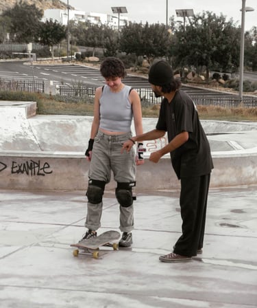 If you’re new to skateboarding, our experienced local instructors will help you build confidence on the board and guide you gently through the basics—like balance, pushing, and your first turns.
